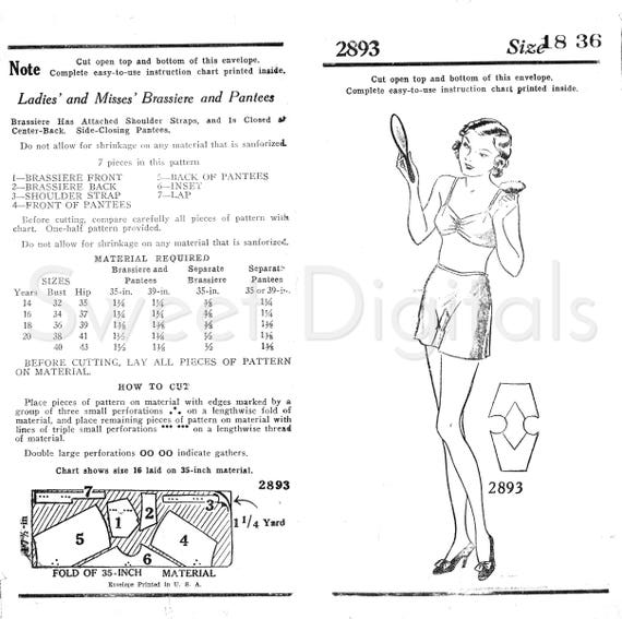 20s Brassiere Knickers Sewing Pattern Bust 36 Knickers Etsy